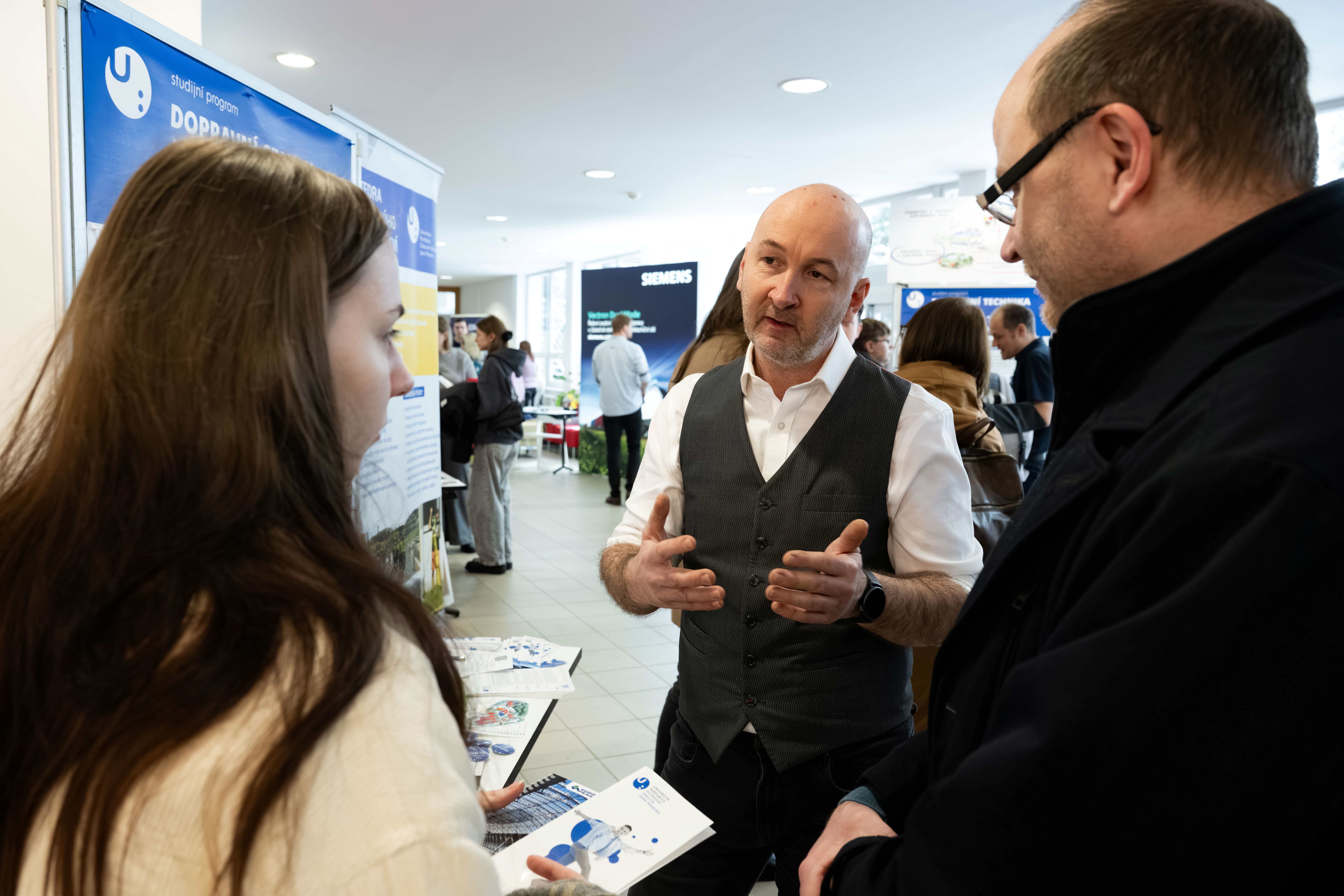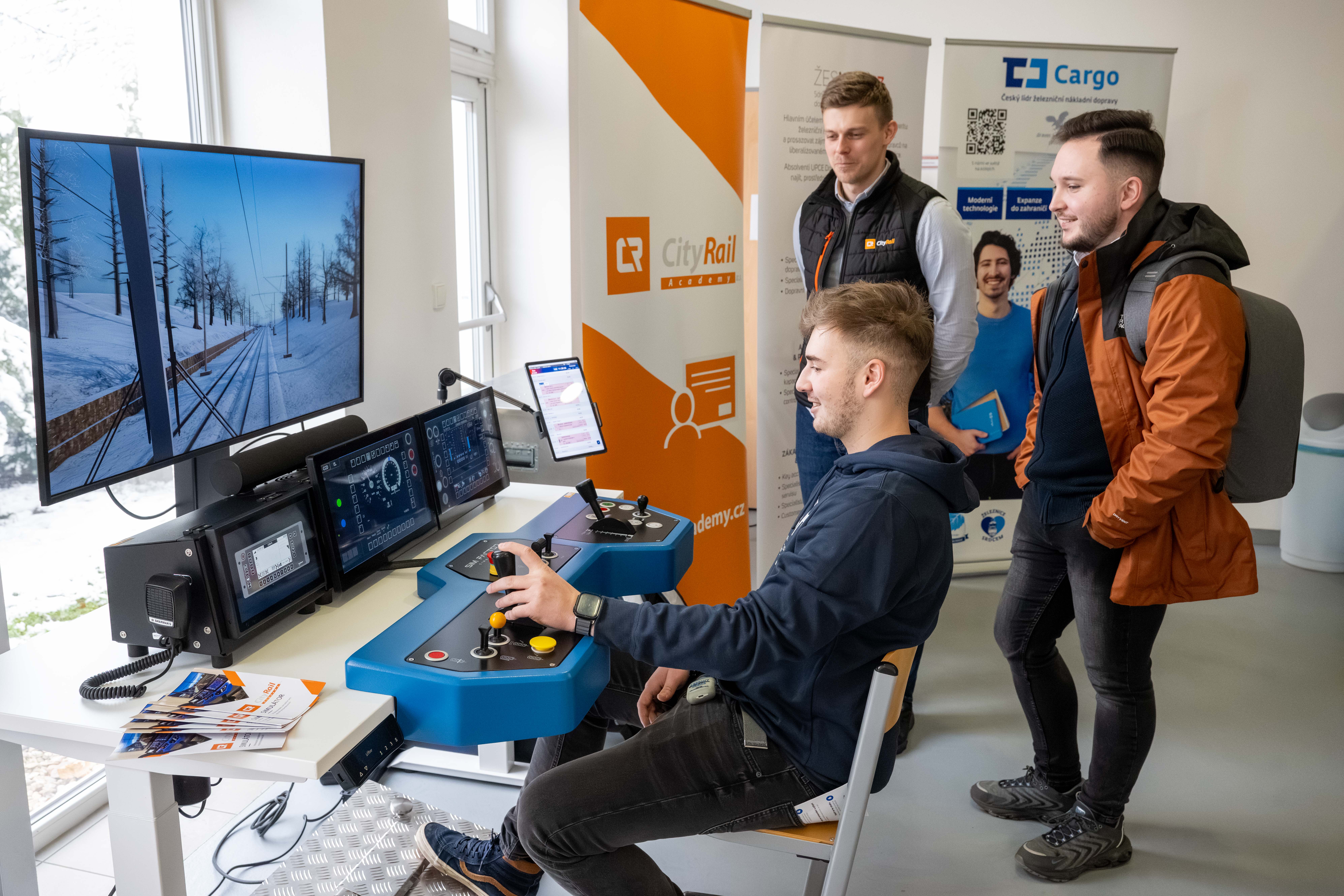 Součástí programu byly i konzultace se zástupci našich partnerských firem, kteří představili možnosti praxí, spolupráce i budoucího pracovního uplatnění. Velkým lákadlem byl simulátor pro strojvedoucí, na kterém si návštěvníci mohli vyzkoušet řízení vlaku v realistických podmínkách.
