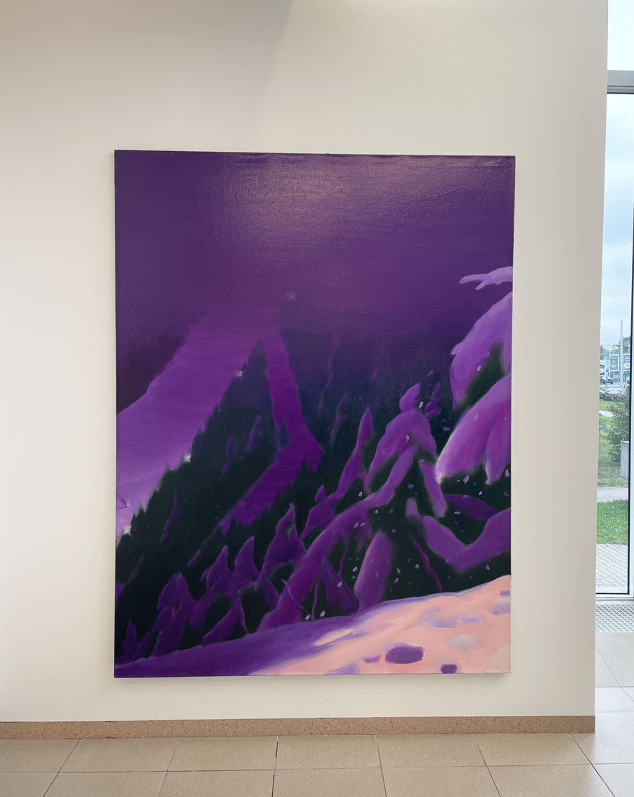 Na ikonickém obraze německého romantického malíře Caspara Davida Friedricha „Poutník nad mořem mlhy“ (1818) stojí na vrcholu hory právě vystoupivší poutník zády k divákovi a pozoruje horstvo zahalené v oparech valících se mlh. Malba nezobrazuje jen přírodu, ale spíše osobu, která přírodu pozoruje, a tematizuje tak samotné „vidění“ a vztah člověka k přírodě. Tento věhlasný romantický výjev jako by se v obrazech Petra Grubera ztělesnil do poněkud přízemnějších pohledů na současnou krajinu, ovšem v neméně romantickém vyznění. Osamocení hrdinové romantismu trávili dlouhé hodiny v panenské přírodě v kontemplaci nad její velkolepostí, tajemností, zšeřelostí. Reflektovali přírodu a jejím často symbolickým významem vyjadřovali subjektivní, emocionální reakci na svět přírody. Gruberovy krajinné pohledy jsou civilní, spektakulární pohledy romantiků jsou nahrazeny intimnějším pohledem na omezený krajinný výsek pouhé tišiny, cesty lesem, omezeným průhledem skrz stromoví. Vidíme průhledy do zasněžených lesů, na opuštěné sjezdovky, stanové tábory nebo chatařské kolonie. Jsou to pohledy důvěrně známé, většinou v podmanivém nasvícení podvečerního světla, kdy slunce již téměř zapadlo a krajina se barví do modrofialových, nebo pastelových okrově narůžovělých tónů. A pokud se v obraze objeví osamělá figura nebo jen její část, zasahující do formátu, téměř výhradně je otočená zády k divákovi, jako by jej vtahovala do výjevu a směřovala jeho pohled na sdílený motiv. Ten je často již jen nepatrně osvícený zapadajícím sluncem nebo z příšeří prosvítajících lamp kdesi mezi stromy s odlesky na sněhu, snad i záblesky neurčitých, právě se rozsvěcujících světel chat nebo ohýnků mezi táborovými stany. Dalo by se rezonovat s Baudelairem: „Kdo praví romantismus, praví umění moderní, to jest intimita, duchovost, barva...vyjádřená všemi prostředky, jimiž umění vládne.“